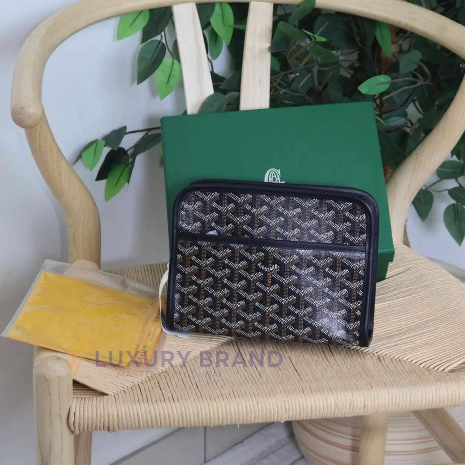 Embody the pinnacle of luxury travel with the Goyardine Jouvence Toiletry Pouch. Meticulously crafted from the iconic, hand-painted Goyardine canvas, renowned for its exceptional durability and resistance, this pouch is far more than a simple accessory—it is a statement of discerning taste.