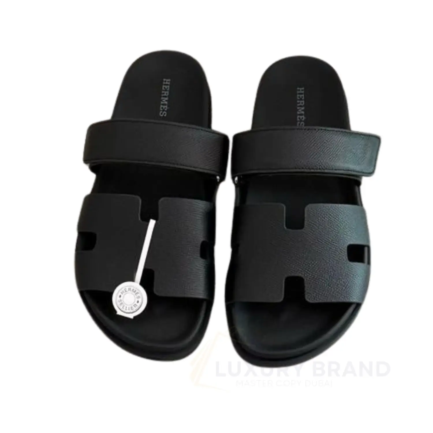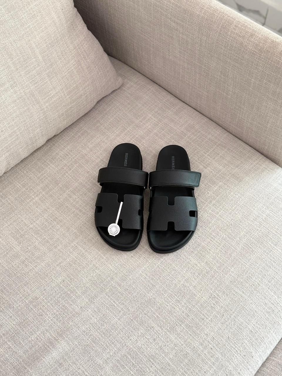 Elevate your summer style with the HERMES Black Calfskin Men’s Sandal – a masterpiece of luxury craftsmanship. Handcrafted from premium black calfskin, these sandals feature a sleek, minimalist design with the iconic HERMES logo subtly embossed for timeless elegance. The cushioned insole ensures all-day comfort, while the durable rubber sole provides excellent traction. Perfect for casual outings or beachside strolls, these sandals embody sophistication and superior quality.