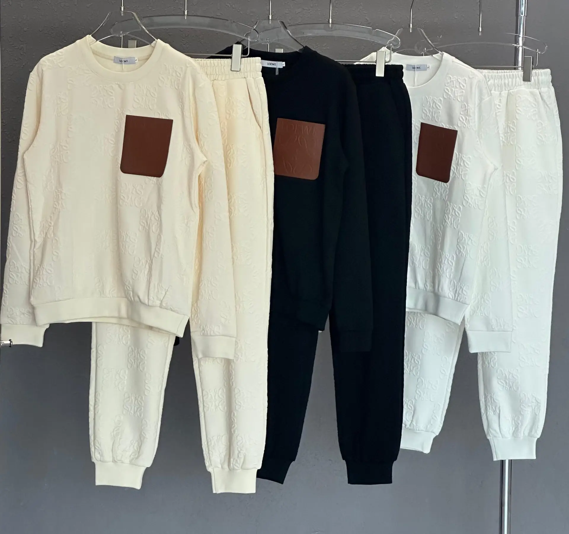 Signature oversized cargo pockets with reinforced, custom-branded hardware add a utilitarian edge and ample storage, perfectly blending function with high-fashion design. Finished with a adjustable drawstring waistband, ribbed cuffed ankles for a clean taper, and subtle yet distinct L OE WE branding, these are not just joggers—they are a wardrobe essential for the discerning individual.