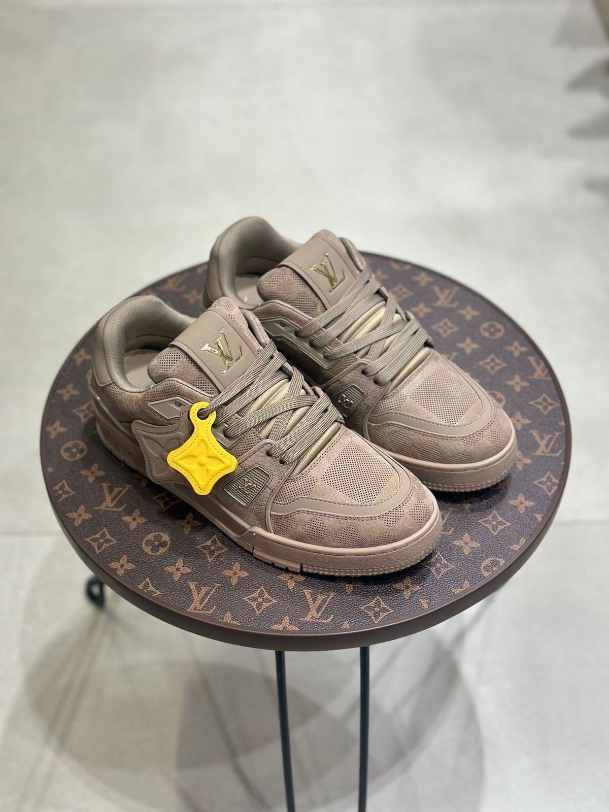 Crafted for the discerning individual who demands excellence, every detail of this trainer has been meticulously replicated to meet the highest standards. The upper is flawlessly constructed from the signature Louis Vuitton Monogram canvas, a timeless symbol of luxury. This is elegantly complemented by rich, supple leather panels on the toe cap, heel, and interior, offering a sophisticated textural contrast.