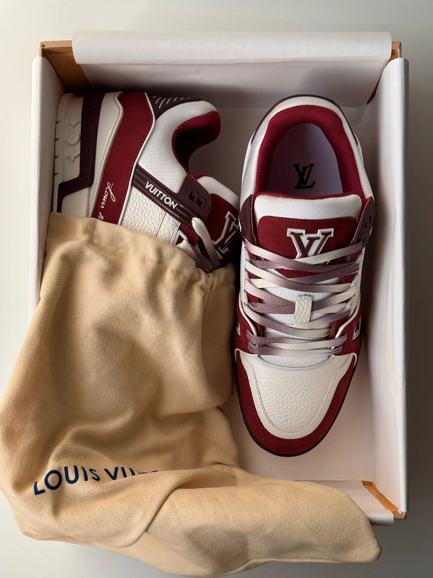 Premium LOUIS VUITTON Trainer Leather Low Sneakers with iconic LV detailing, superior comfort, and timeless design for a luxury streetwear look.