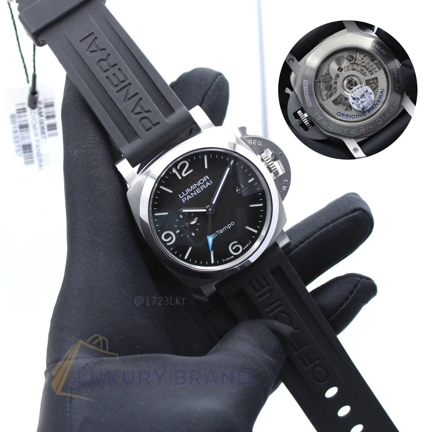 The classic Panerai “sandwich” dial, with its deeply layered structure filled with Super-LumiNova®, ensures absolute readability in the deepest abyss or darkest night. The chronograph counters at 3 and 9 o’clock are perfectly balanced, providing clear elapsed time measurement without cluttering the iconic aesthetic.