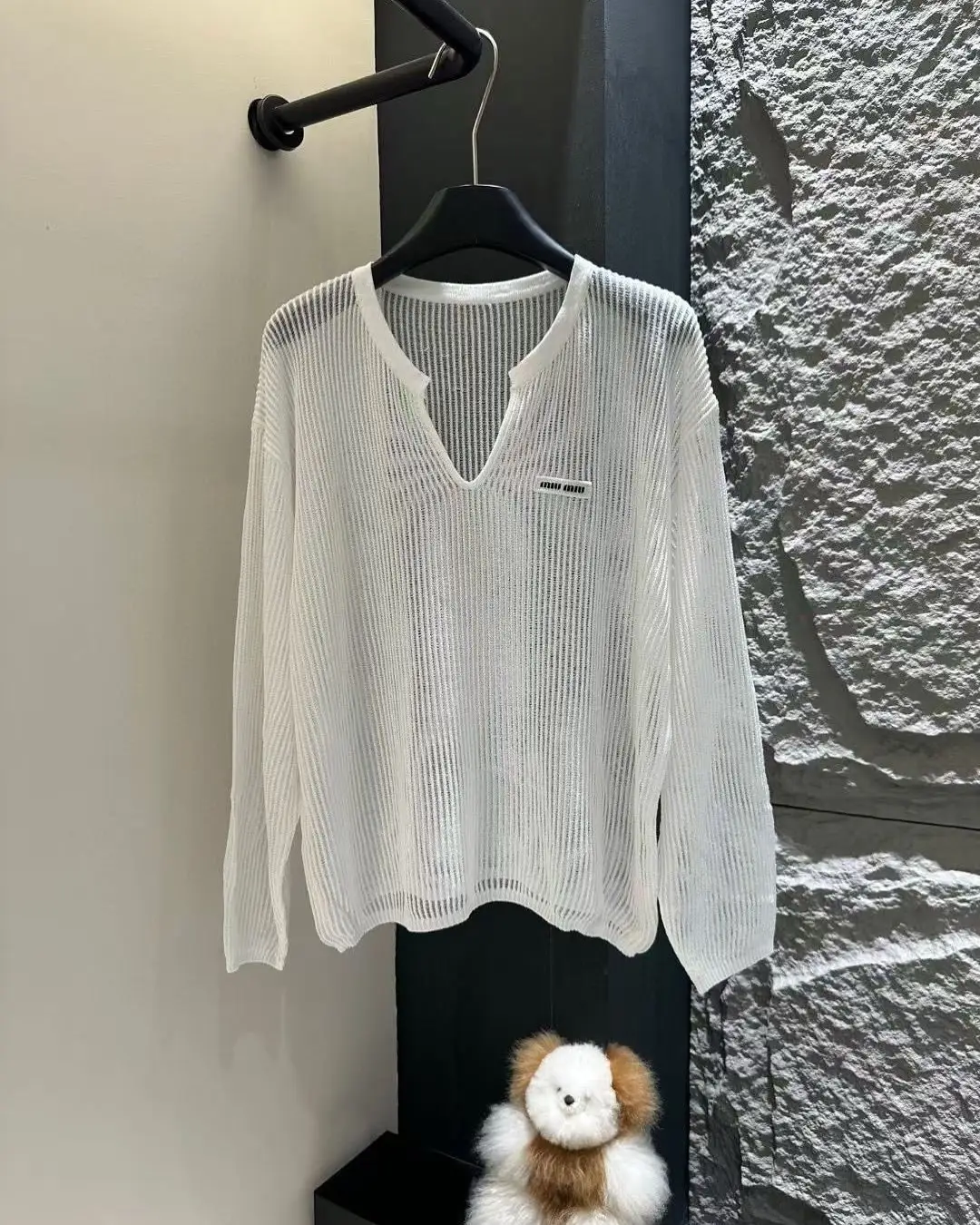 The classic bateau neckline frames the collarbone with understated grace, offering a refined alternative to everyday crewnecks. Expertly knitted with precise tension for a defined yet comfortable fit, this piece showcases the exceptional quality and attention to detail synonymous with the MIU MIU name.