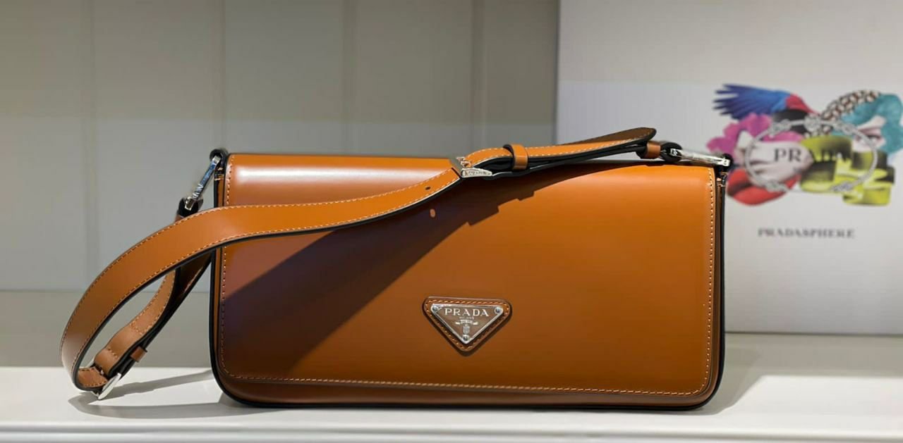 Precision Triangle Logo: The defining feature—the iconic enameled triangle logo—is perfectly executed. The “Prada Milano” lettering is crisply engraved with flawless clarity, color, and depth, secured with authentic-feeling metal rivets.