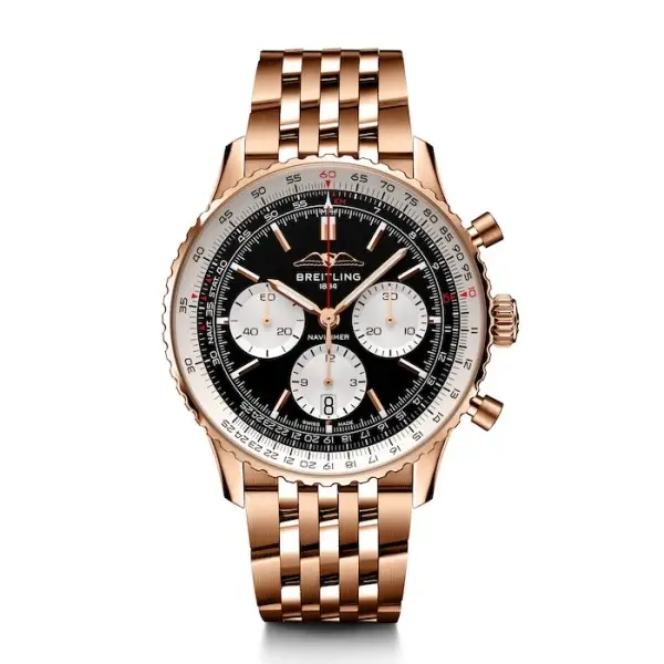 Code:RB0138211B1R1 WATER RESISTANT:yes WATCH MARKERS:Batons STRAP MATERIAL:18ct Rose Gold Gender:Men MOVEMENT:Automatic DIAL COLOUR:Black CASE MATERIAL:18ct Rose Gold COLLECTIONS:Navitimer Diameter:43mm