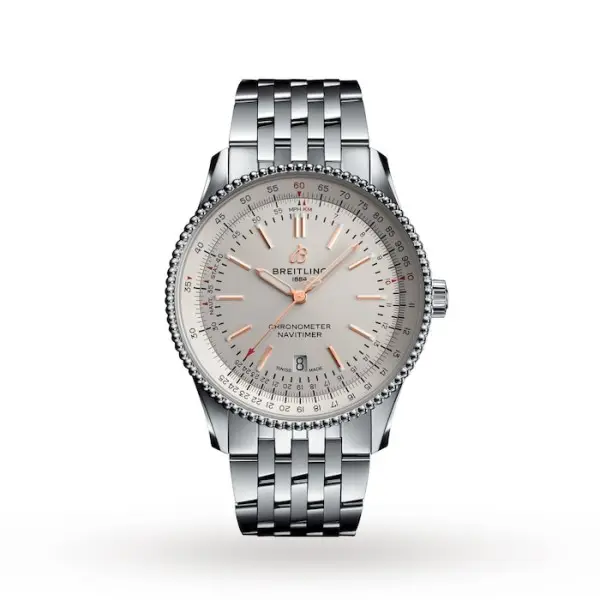 Code:A17326211G1A1 WATER RESISTANT:yes WATCH MARKERS:Batons STRAP MATERIAL:Stainless Steel Gender:Men MOVEMENT:Automatic DIAL COLOUR:White CASE MATERIAL:Stainless Steel COLLECTIONS:Navitimer Diameter:41mm