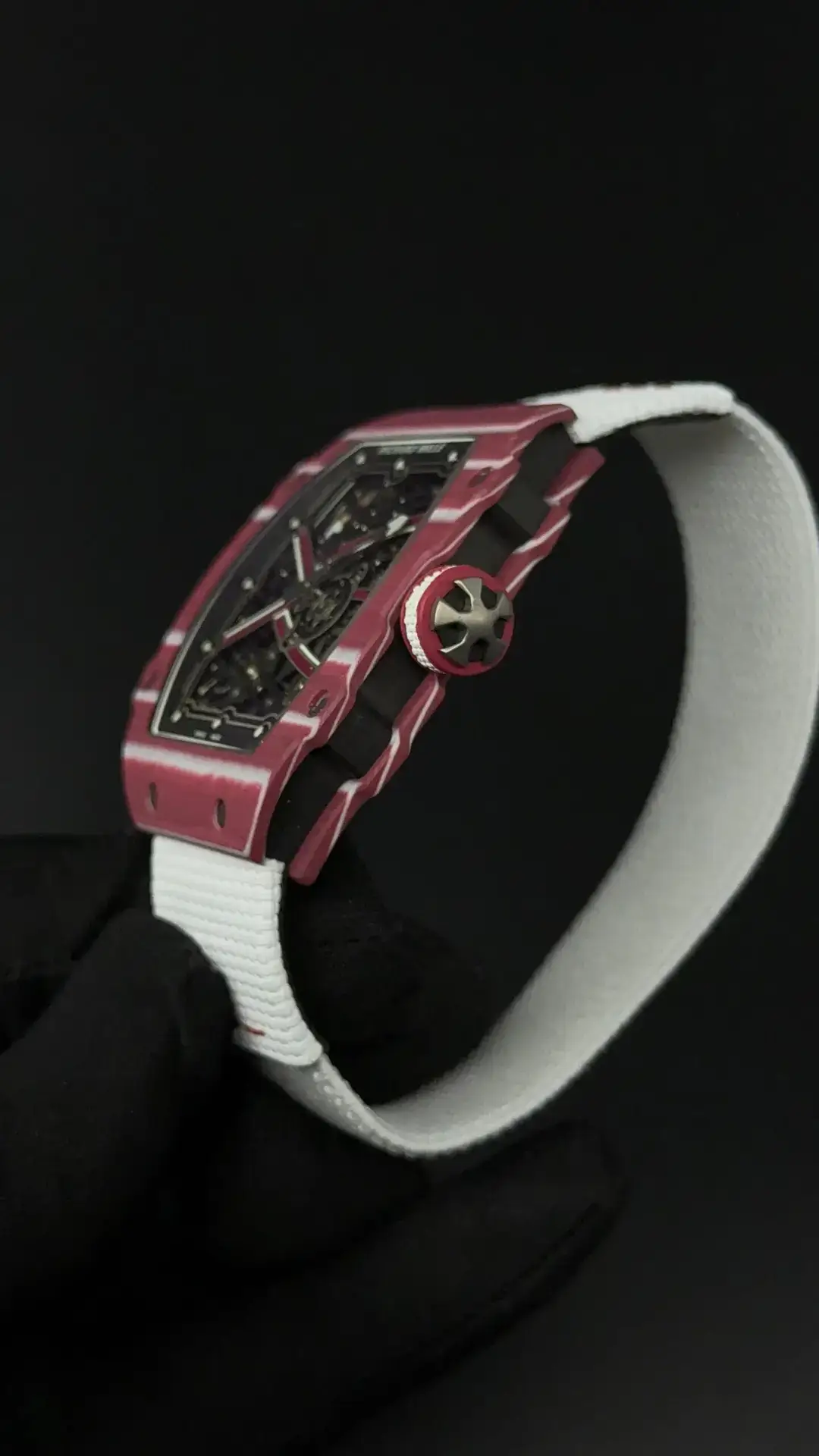 RICHARD MILLE RM67-02 Qatar edition EXTRA FLAT WATCH BROWN CARBON WITH WHITE STRAP SWISS MOVEMENT